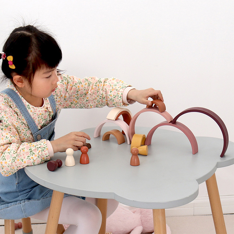 A Montessori halmozott játék egyfajta játék a korai neveléshez és az intelligenciához. A minimális és időtlen kialakítású játék minden korosztály számára alkalmas csecsemőknek és gyermekeknek. Az építés során fejleszteni kell a gyerekek fantáziáját és egyensúlyi képességét, hogy a gyerekek teljes játékot adhassanak fantáziájuknak, tetszés szerint alakíthassák ki saját formáikat. Tanulja meg a térbeli tudatosságot, és azt, hogy a dolgok hogyan illeszkednek egymáshoz és válnak szét. Gyakorold az egyensúlyt azáltal, hogy felfedezed, hogyan halmozódnak fel, egyensúlyoznak vagy dőlnek fel a darabok. Különféle építőelemek láthatók hidakban, alagutakban, kerítésekben és kunyhókban. A szivárványtömbből libikóka is lehet. EgyszerűA formák és a gyönyörű színek gondosan készülnek, amelyek nem csak a képzeletet serkentik, hanem továbbra is játszanak, és gyönyörű teret varázsolnak beltéri dekorációként.